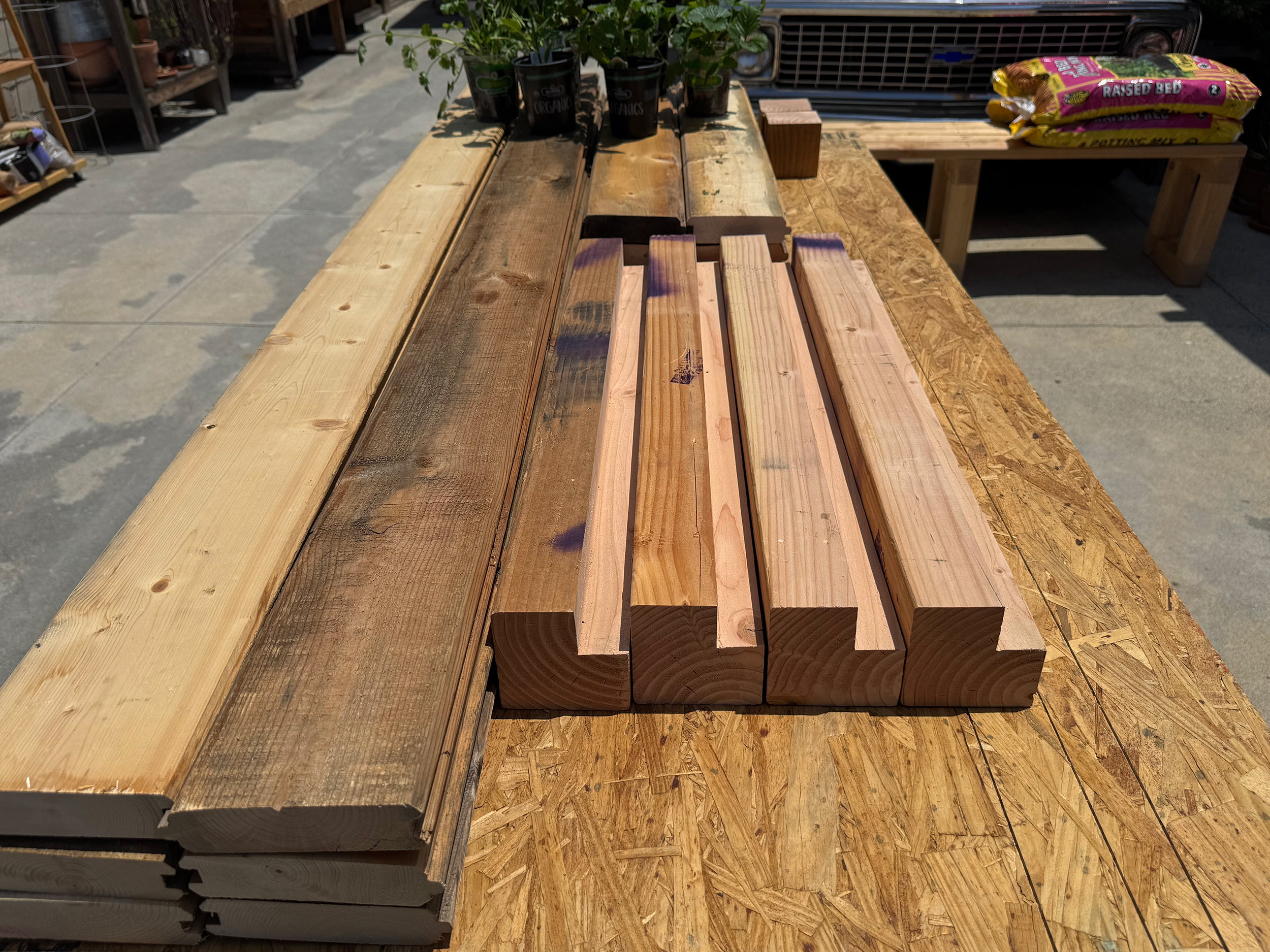 - Top trim ripped tongue-and-groove with the profile trimmed off for a flat cap